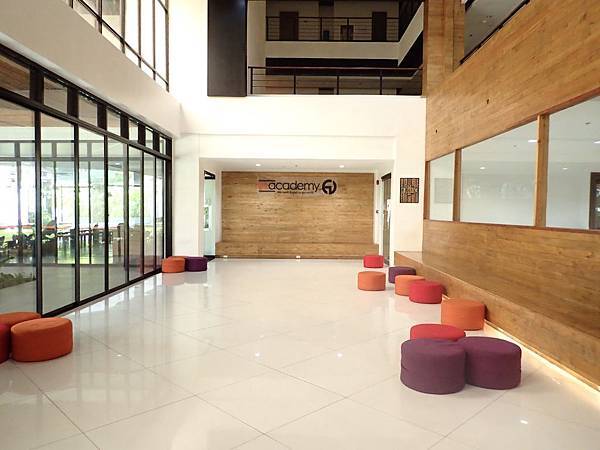這裡就是宿舍樓層了,因為這間EVacademy學校很搶手,要提早預約才能讀這間學校,因此我們參觀學校的時候,宿舍都住滿了,而且聽說現在如果要讀EVacademy要半年前預約了,可見環境好又經濟實惠的學校,大家都想搶,我還私下問JumpUK翻滾吧遊學代辦公司,如果我明年真的想來菲律賓宿霧這間語言學校,我要什麼時候告知您,她竟然跟我說,一回國12/8就要告知,而且她還要去查查看還有沒有位置,還有幾月才能報名,可見名校真的都很搶手,如果也喜歡這環境的朋友,也想讀這間學校的話,也請提早半年去詢問JumpUK翻滾吧遊學代辦公司,幫您先搶位置。