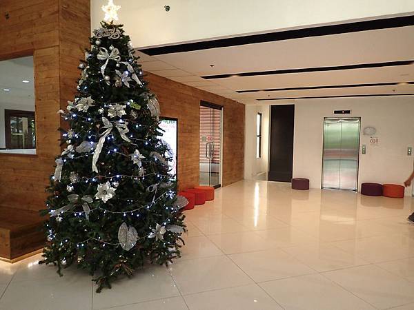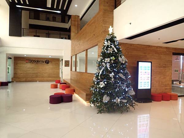 因為聖誕節快到了,所以這裡是學校的一樓整個大廳,應景放個聖誕樹當裝飾。明亮的大廳,還有幾張椅子,乾淨的地面