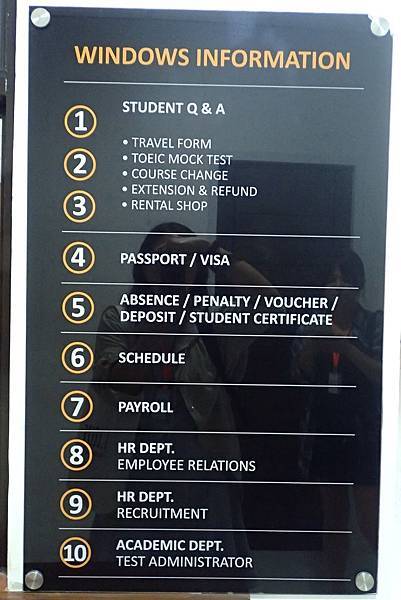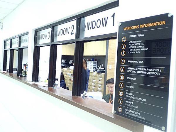 這裡有告訴學生一到十櫃檯是辦理什麼業務