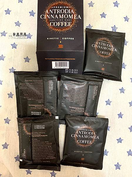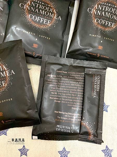 耳掛咖啡後面那一小包不是糖唷!那就是牛樟芝子實體,是一個很棒的保健食品。
