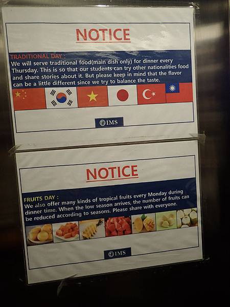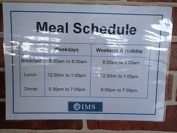 IMS這間語言學校,供應三餐,餐廳與洗衣粉還有小賣部都在頂樓。
