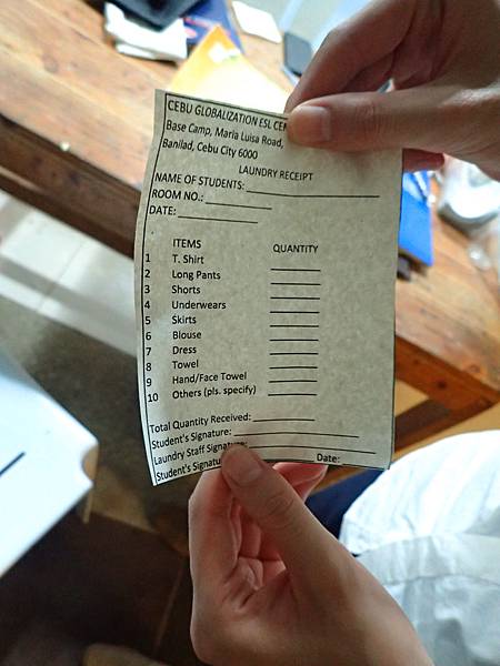 這是洗衣單,學生需要洗衣服,就填單送來這裡。