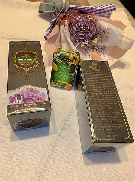 Jessica要介紹的Makhamthai三樣系列產品,手工spa溫泉皂80个、保濕身體乳120ml與天然精油按摩油120ml。