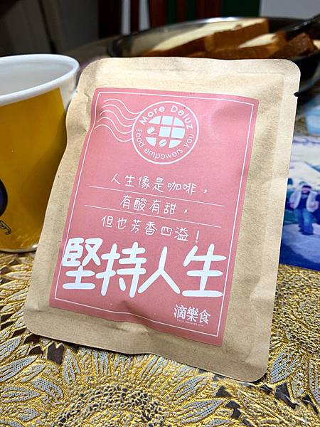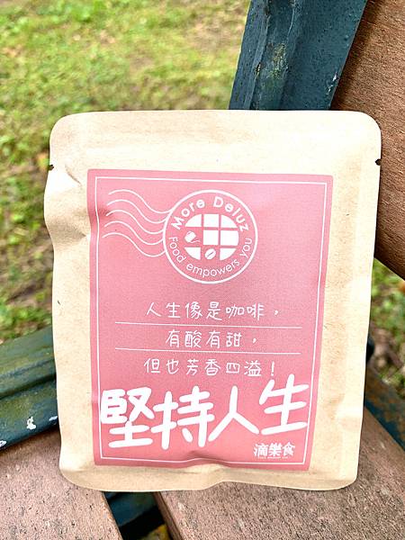 就想到,我入手的滴樂食Delicious的掛耳咖啡,好像有一包叫做堅持人生。