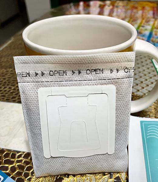 把包裝拆了,然後把耳掛掛上咖啡杯上。