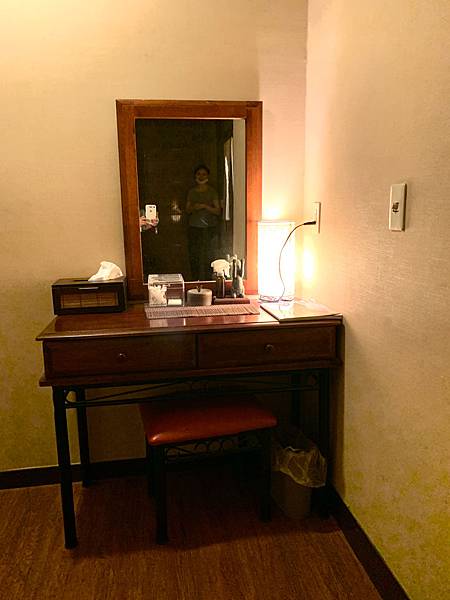 這裡有梳妝檯,客人做完spa可以梳妝打扮的地方,稍微梳整再離開,還有讓客人在洗完澡後可以梳整的地方。