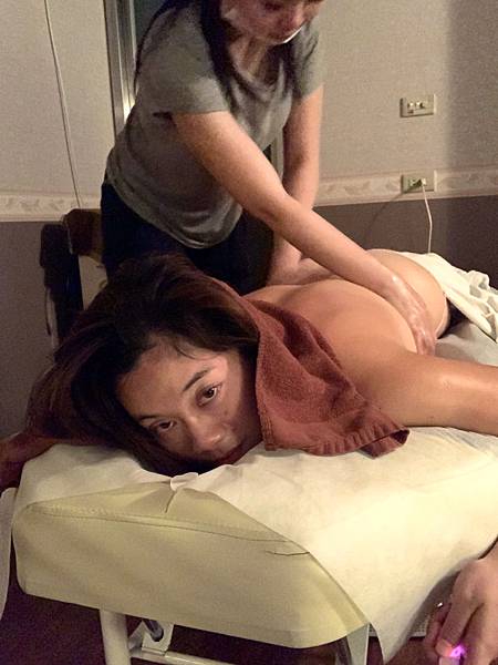 美容師先從背部開始,利用精油按摩全身筋絡與穴道,而且都精準到位,很療癒舒壓。