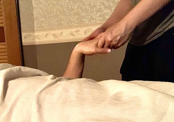 在來就是雙手手部的按摩,一直按到手指,真的都全方位的顧及,精油的味道也很舒適,讓我舒服到想睡覺了,不行不行,我在工作,下次才要在花錢了享受。