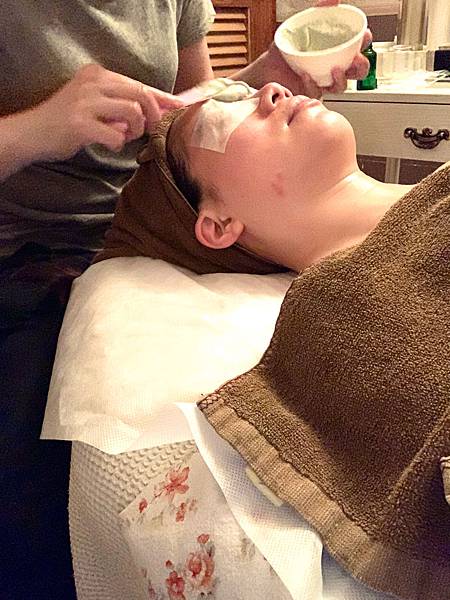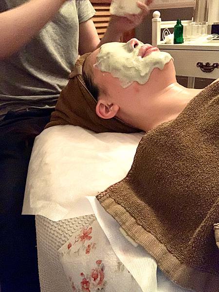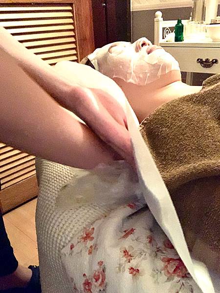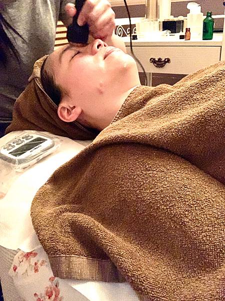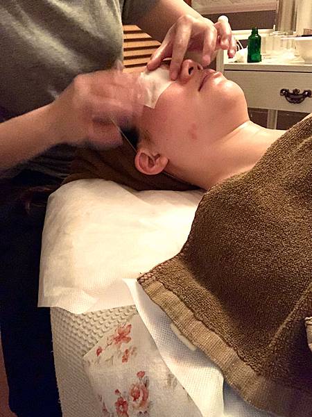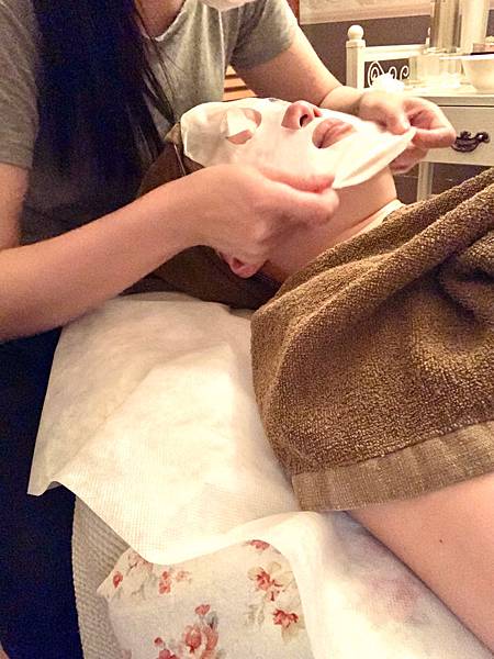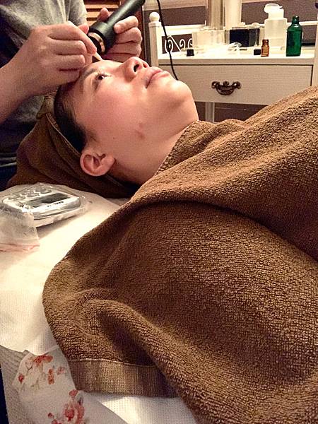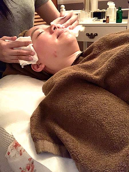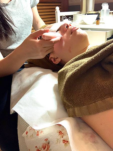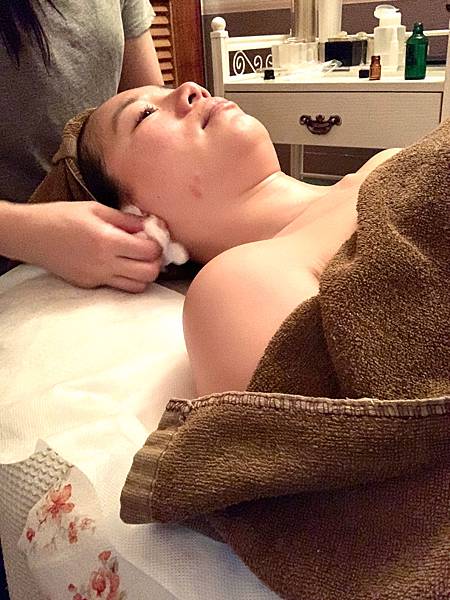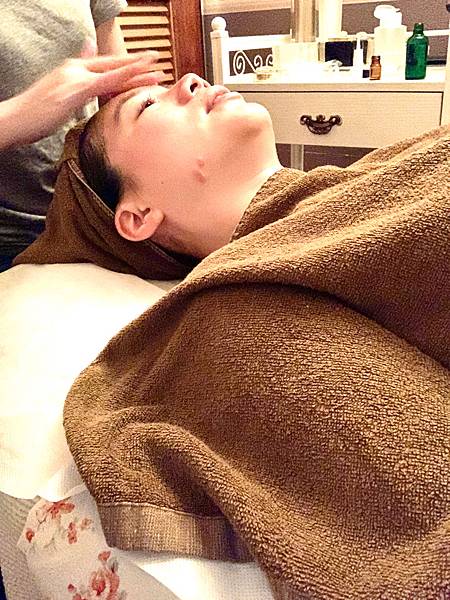 敷完鎮定後,臉部的保濕精油按摩來了,美容師一開始在我臉上按摩就聞到薰衣草的味道,好香的天然精油味道,完全不熏鼻。