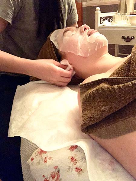 敷鎮定面膜,然後順便在幫我清理脖子跟耳朵。