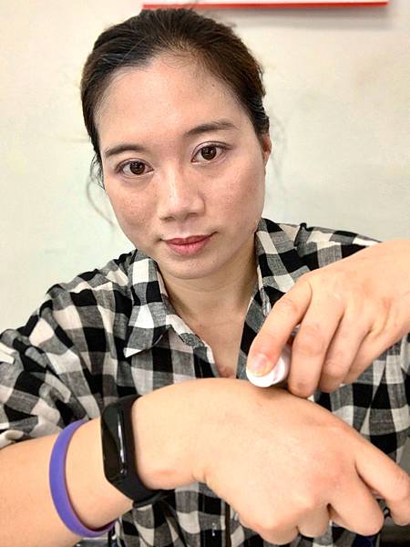 再壓適量的金瓶在手背上,金瓶是油狀。
