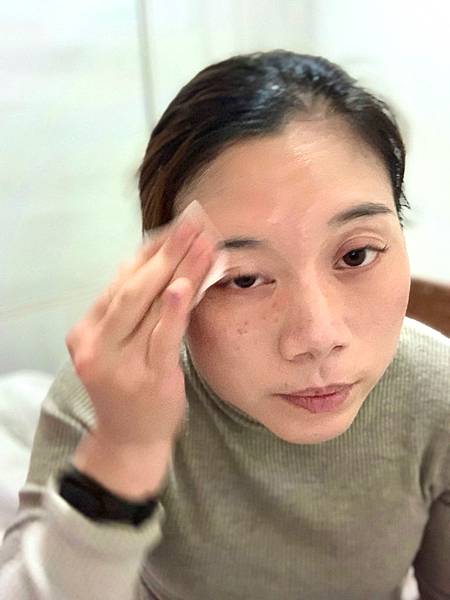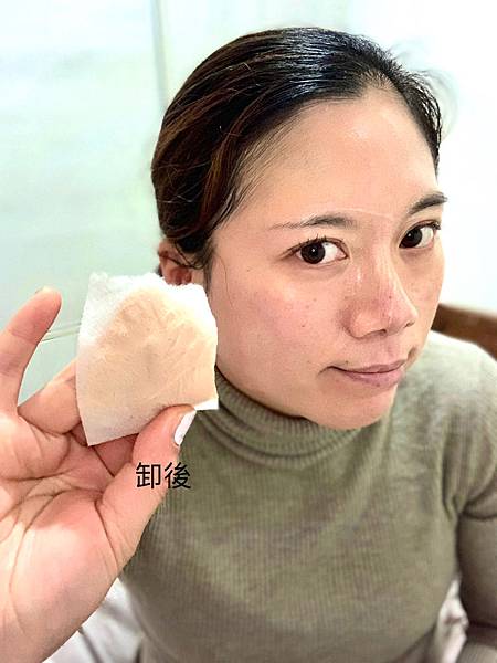 先卸除一邊臉,妳看超好卸,臉完全沒有泛紅,也不緊繃,而且彩妝跟髒污都在化妝棉上。