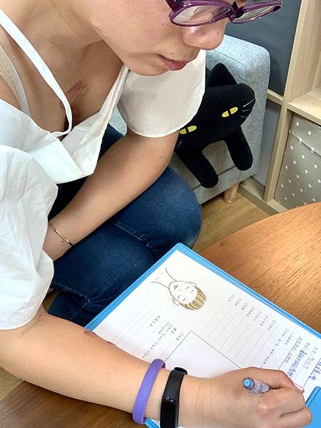 我先來填寫我的資本資料與膚質,還有使用的產品,闆娘也會依妳的膚質推薦妳可以使用怎樣的保養品。