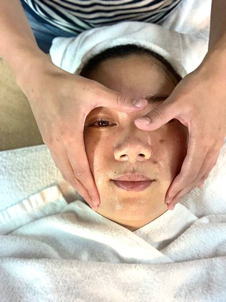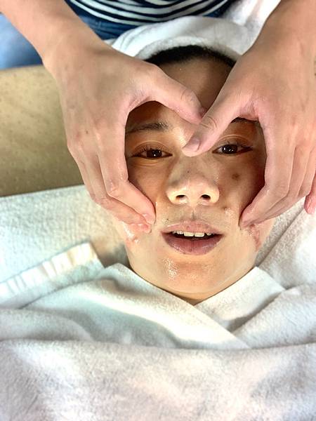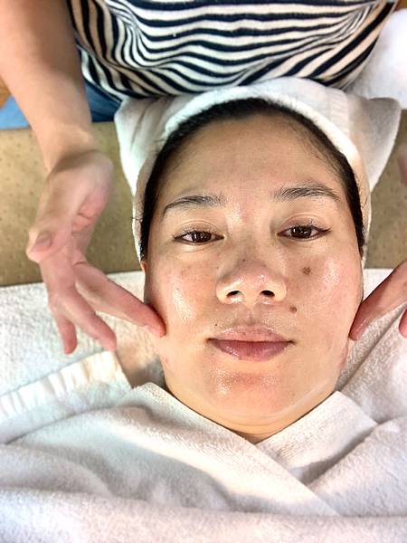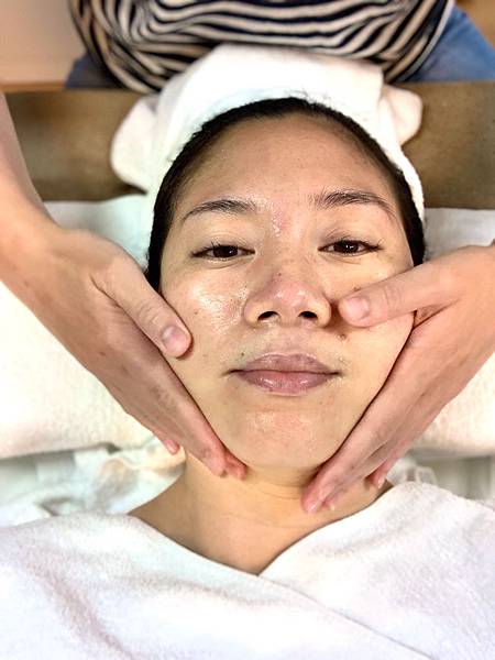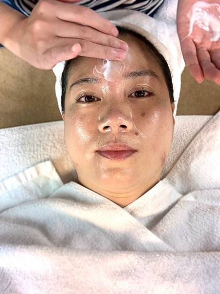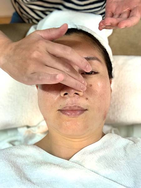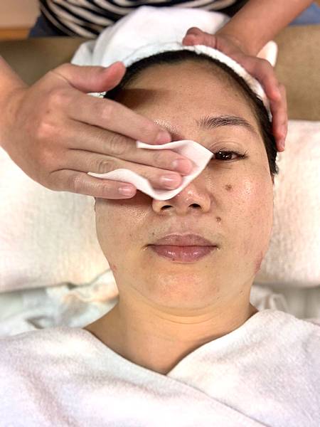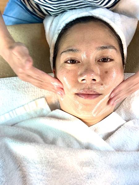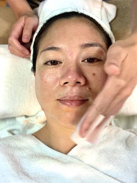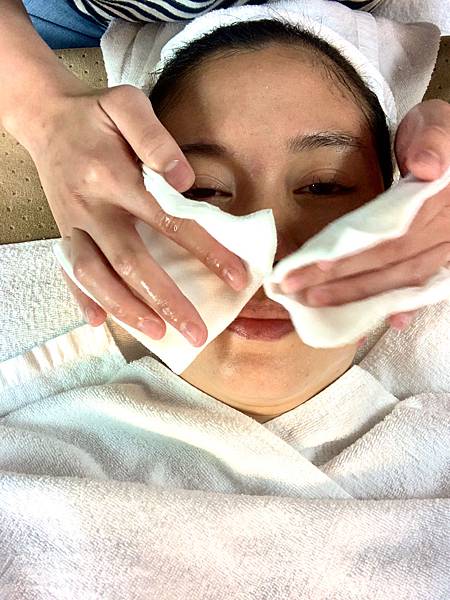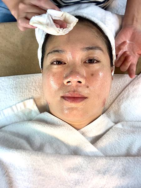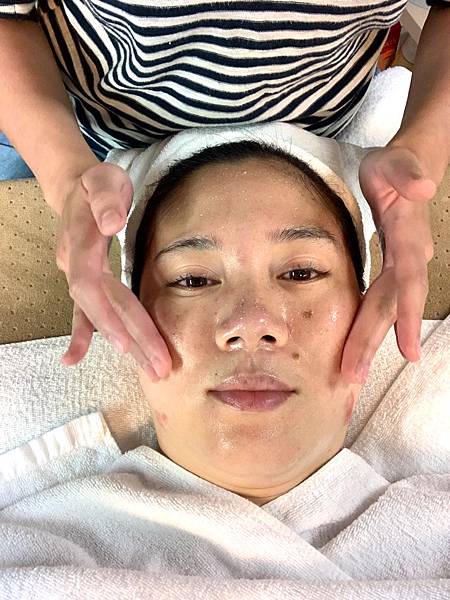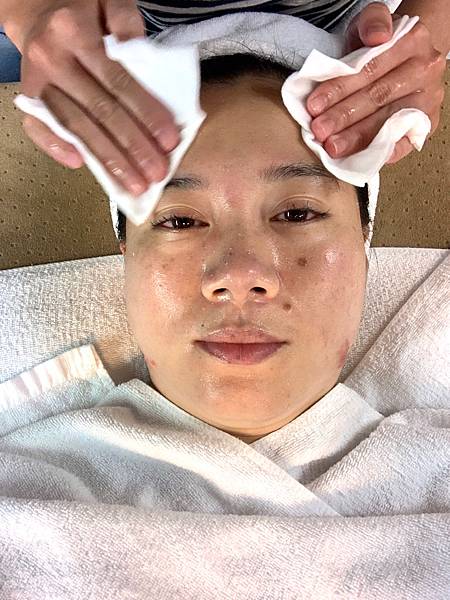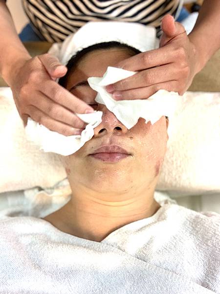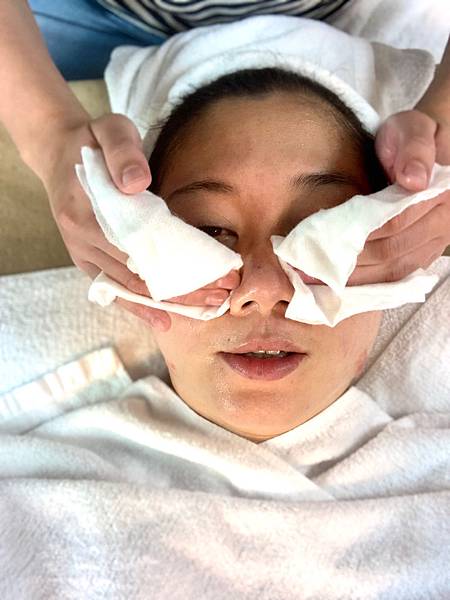 鎮定時間結束,闆娘幫我洗掉臉上的面膜。