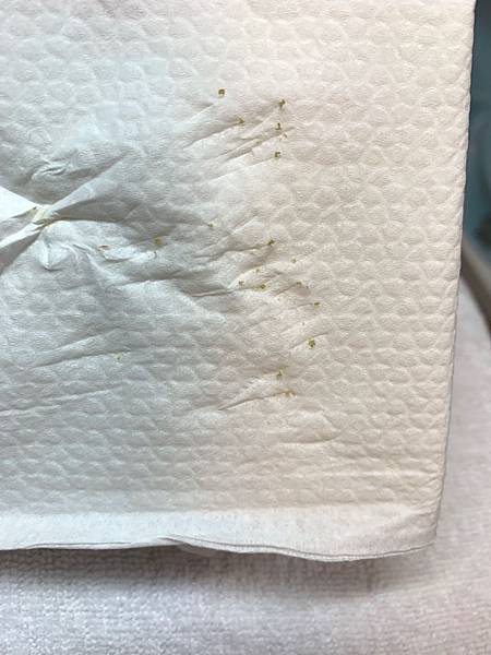 這是闆娘幫我清出的粉刺,闆娘有跟我解釋,其實我臉上粉刺不多,粉刺都屬於小型的,而不是那種很大的,我的粉刺都小小的,看起來比較大顆的是很多小顆堆積起來的