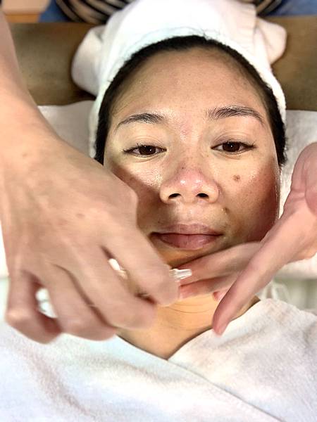 清潔完後在清粉刺前,闆娘會幫妳用保養品,幫妳做臉部穴位按摩,舒緩臉部肌肉。