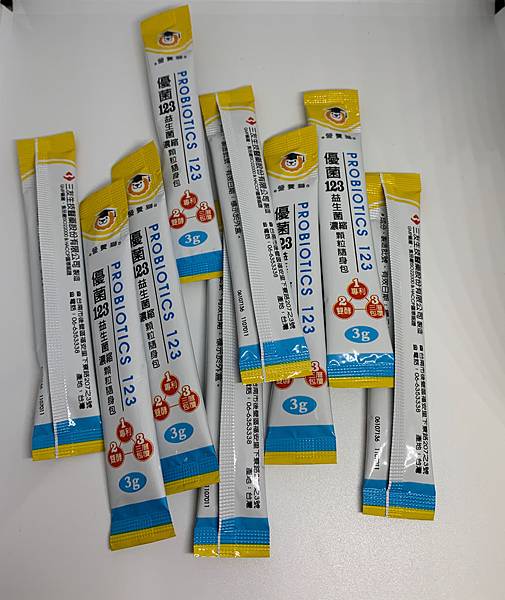 三友營養獅-優菌123益生菌,隨身包裝,攜帶方便,而且呀!飯前飯後吃都可,隨時來上一包,一天吃兩次,一次一小包。