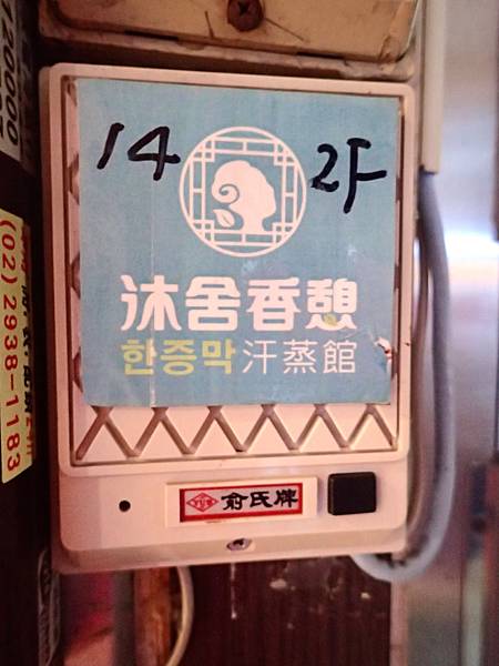 這家韓國道地時尚的汗蒸浴名稱叫做(沐舍香憩汗蒸館),有專屬的門鈴,樓下的大門為了安全都會關起來,很棒。