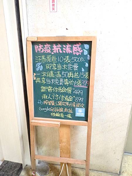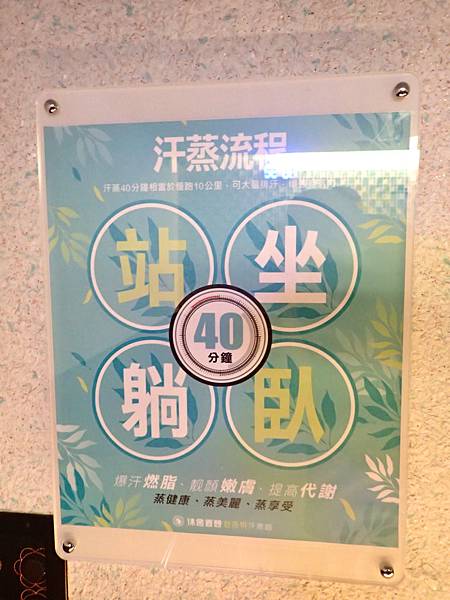 汗蒸室裡面還有說明紙板,讓大家知道來到這裡汗蒸要多久。