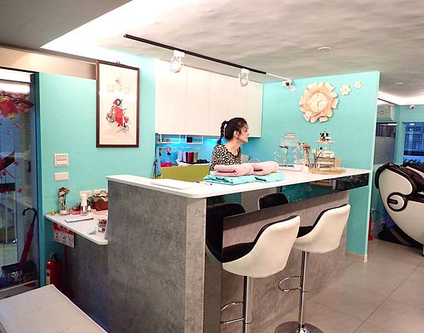 這裡是沐舍香憩汗蒸館的櫃檯,闆娘是一位美麗的姊姊,進到店裡就很熱心的招呼,還帶著我們換拖鞋,闆娘也要我們放心,因為脫鞋每次穿完一雙,就會馬上消毒,讓客人安心,而且整個沐舍香憩一進來就讓我覺得很乾淨,很整潔。