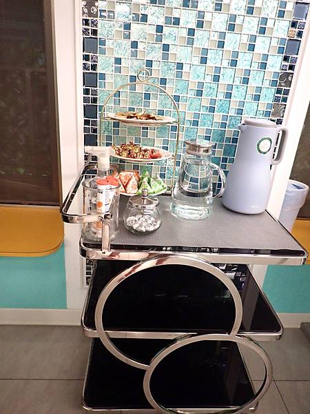 旁邊還有供客人免費使用的小點心跟茶水,還有維他命發泡錠可以喝。