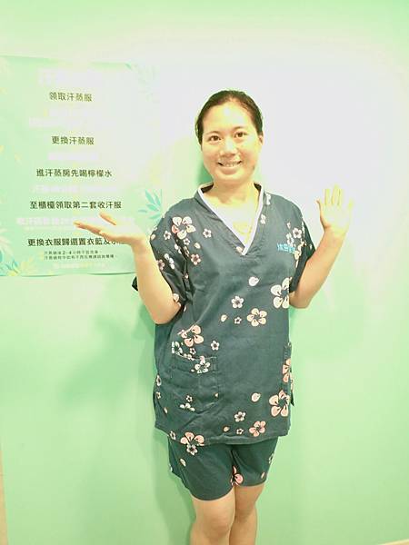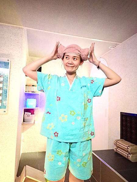 我跟姐妹兩人都梳洗完後,換上了汗蒸衣服,要出去汗蒸室流汗了。