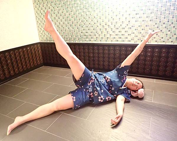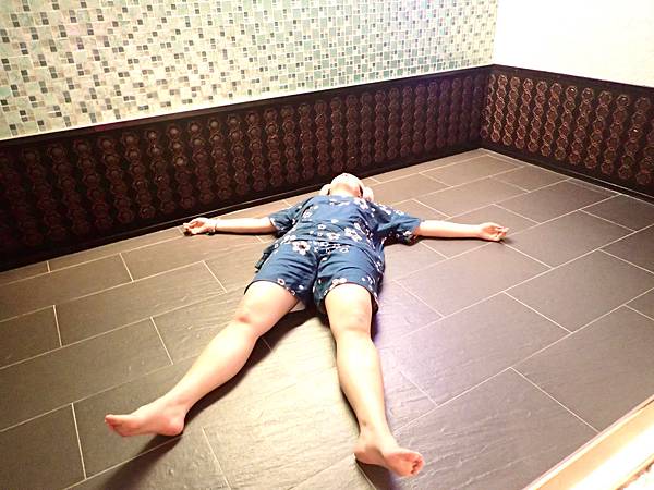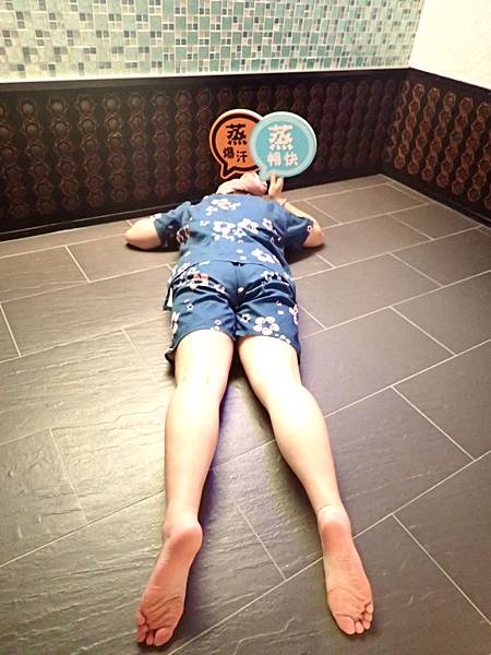Jessica就按照闆娘的教學,來各個姿勢都來體驗汗蒸,我們一邊汗蒸一邊聊天。