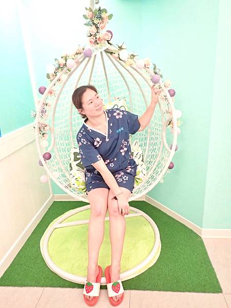 角落還有一個漂亮的搖椅,可以讓來收汗的客人吃點心跟拍照的地方,沐舍香憩汗蒸館,真的處處都有巧思,好棒唷!