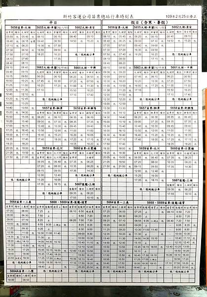 這是新竹客運的時刻表,如果看得懂的話可以稍微看一下,找自己要搭的車。