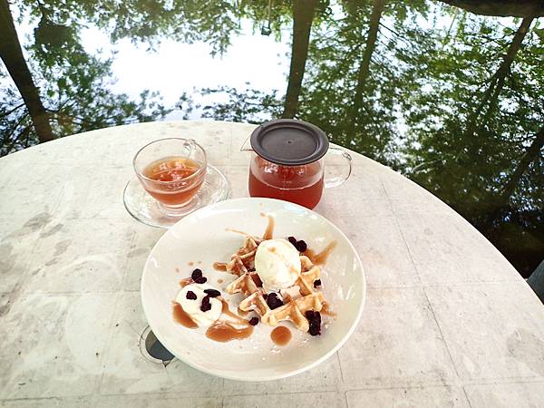 辦理好住宿手續之後,我們用下午茶的地方不是在室內,店長說帶我們到民宿後面的秘境用下午茶。