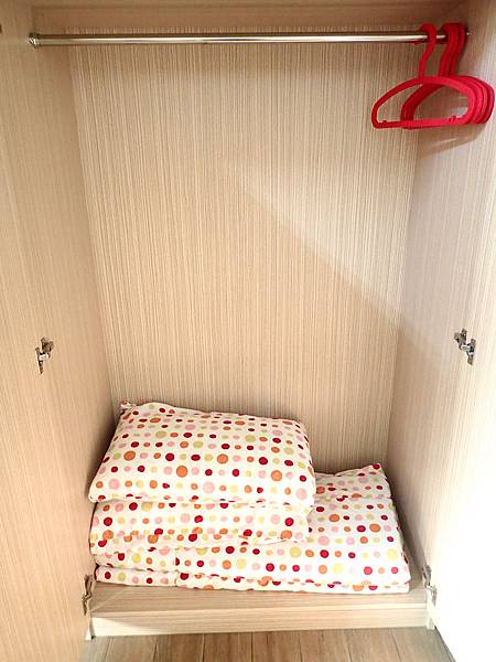 在來看到的就是衣櫥,裡面有衣架還有兩床枕頭跟棉被。