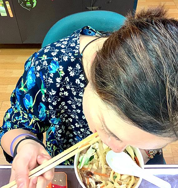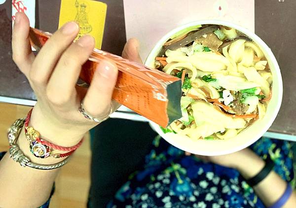 Jessica決定直接吃,把他加入我的湯麵裡。