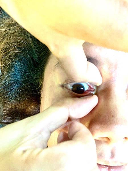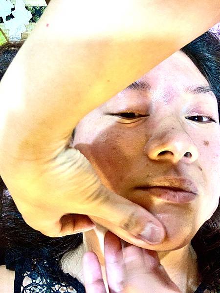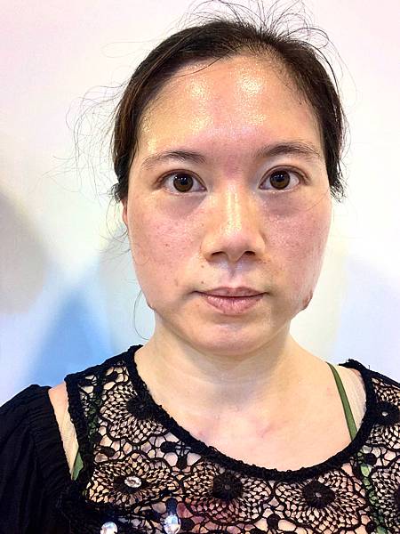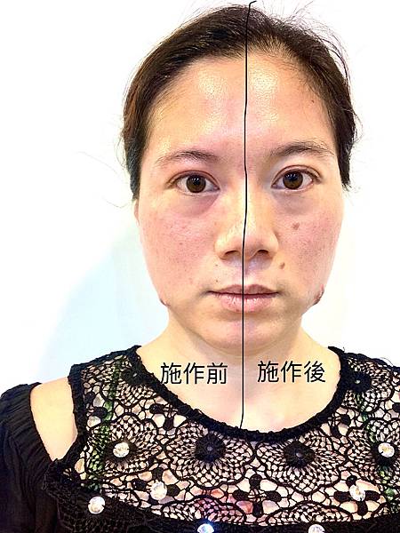 為了真正體驗有感,我跟臉雕師先拍了一張未施作前的照片,臉雕師還特別講解,我的臉,因為吃東西跟睡覺的習慣,我臉型有歪,而且兩邊不一樣大,肌肉也長的不對稱。