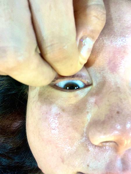 這是臉雕師一開始先幫我做半邊臉,然後順便跟我說,她徒手了哪些地方,還有兩邊哪裡不同,看了鏡子也讓我眼睛一亮,最後在幫我完成另一邊臉。