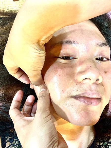 臉雕師的手法很舒服,只是到了某些臉部的點會有點感覺,那裡就是妳姿勢不對的地方,也是走樣的地方。