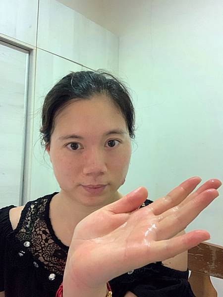 擠出適量的凝露,在手掌上。