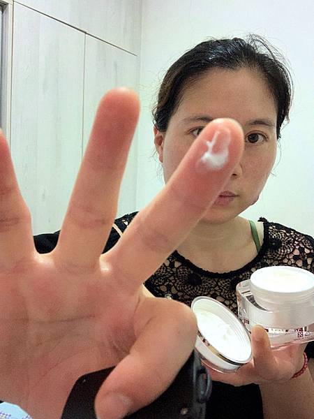 取出適量的乳霜,乳霜很好吸收也很好推勻。