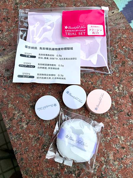 這時朋友跟我說有一組底妝很好用,而且可以先試試看體驗組,而且是連晚上都可使用的,清潔也很簡單,只要用肥皂或自己的洗面乳就可洗掉,那組底妝是礦世綺肌Beautiful Skin免卸裸肌礦物蜜粉體驗組,無需卸妝也不堵塞毛孔,還抗紫外線,高遮瑕、質地細緻超適合現在的夏天,日本超過600間皮膚科診所販售,皮膚科醫生研發,還可以當晚安蜜粉,6月初開賣,造成熱賣,重點是這敏弱肌適用。
