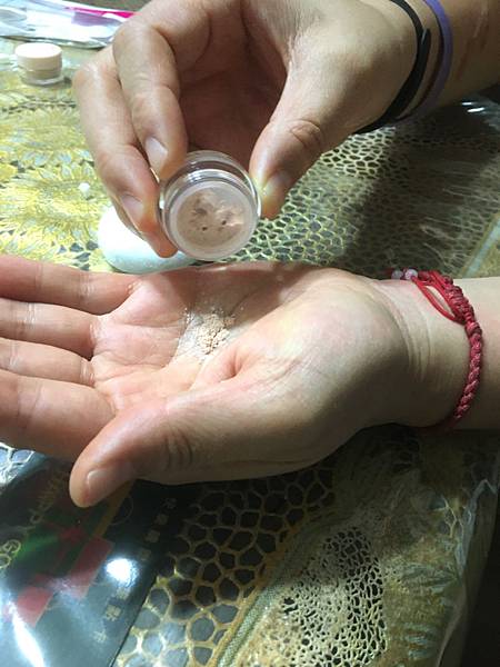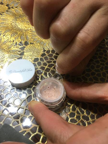 妳看礦世綺肌Beautiful Skin 免卸裸妝礦物蜜粉體驗組的蜜粉,粉末真的很細緻,我好喜歡那種觸感。
