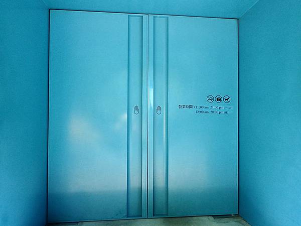 藍色的門,設計是往內推的,而且兩邊都可推。