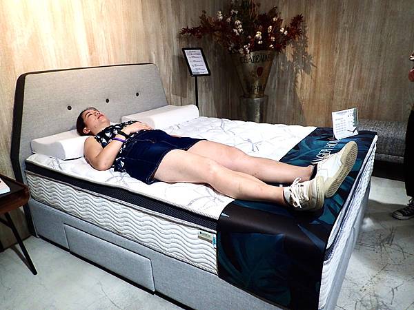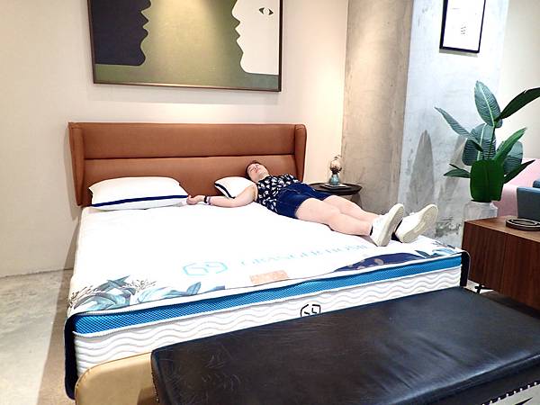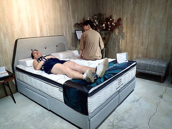 這張床真的超厲害的,我躺著,店員在我身邊坐下,我真的沒感覺到欸!這樣會翻床的另一半,就不會影響我了,我可以安眠到天亮。