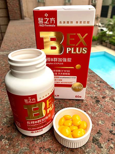 台塑生醫醫之方長釋B群EX PLUS加強錠,主成分維生素B1誘導體,與一般維生素B1不一樣(有特殊結的結構形式)有兩大特色,1.迅速轉換可被人體吸收利用,轉為活性B1,2.不易破壞延長體內留存時間,效果更持久。