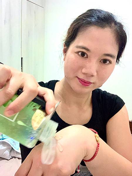 輕輕輕拍臉部肌膚,還有稍做輕柔按摩,因為很濃稠,吸收很快,肌膚瞬間就把蘆薈保濕精華化妝水吸收進肌膚了。
