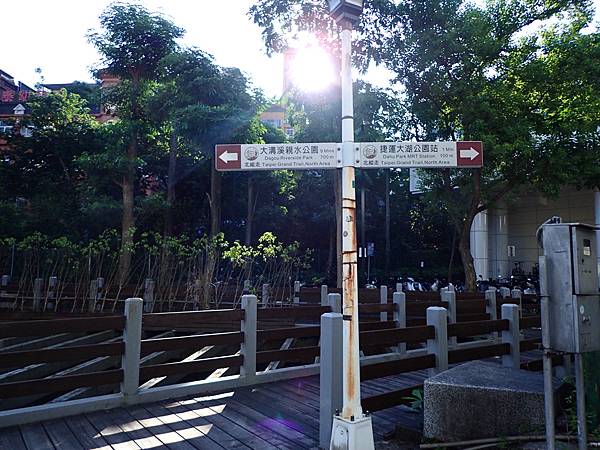 這個步道也不知道小時候是否有走過,也想不起來了,但是從現在開始就近進行運動很可以,當天從港墘站搭捷運,7:30在大湖公園站,這個大溝溪與圓覺瀑布的登山口入口位在捷運大湖公園站附近,從一旁的大湖山莊街的方向朝往住宅區前進,沿著人行道行經國小,繼續前行來到道路尾端,就可以來到大溝溪親水公園。