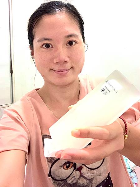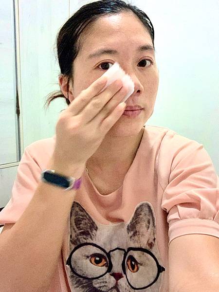 Jessica習慣用化妝棉,因此倒在化妝棉上,質地比化妝水濃稠,因為是有精華液的質地。