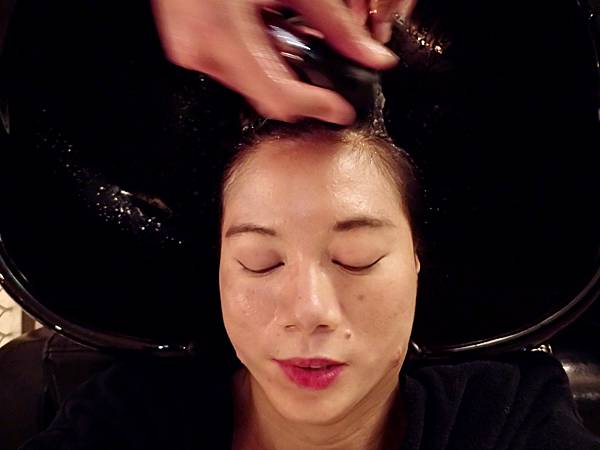按摩完後,護髮前會先把頭髮洗乾淨,第一次用一般的洗髮精。