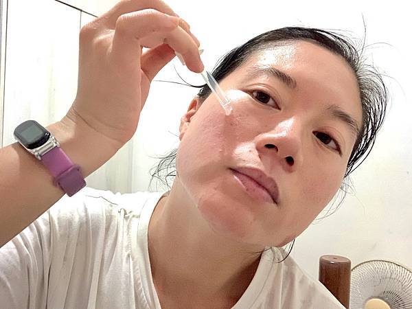 精華液有時也會拿來當作面膜水使用,有時保養不會上乳液,洗完臉後直接化妝水跟保濕精華液,這樣也可以!夏天其實不需要乳液,只要化妝水跟精華液。