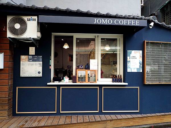 在走進巷口之後,就會遠遠看到一間小間的藍色小小空間,這間咖啡店(Jomo coffee)以藍色設計為主,藍色真的很美,也有在賣咖啡豆,還有耳掛,咖啡豆與耳掛的包裝也以藍色為主,耳掛5包一組,還有外袋,包裝很精美。