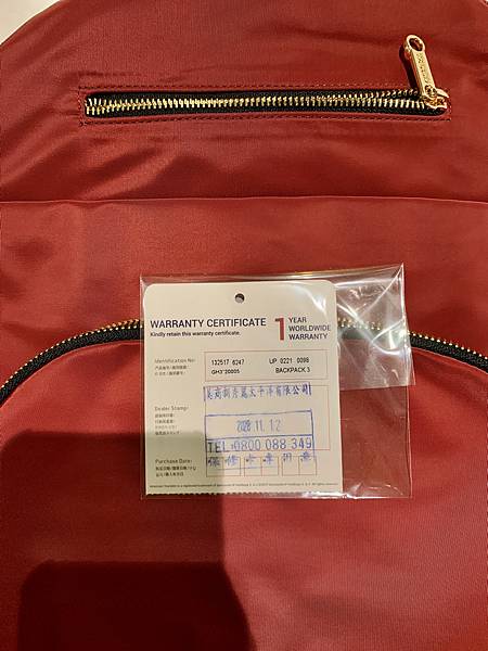 買下去發現AT服務很好欸,買包包還有附保修卡,還有保證書。