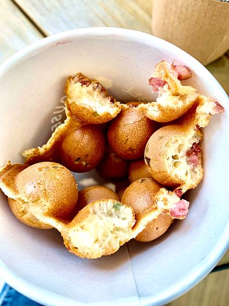 三星蔥芝士鴨是鹹的推薦,我以為是鬆餅,因為作法很像鬆餅,但店員說她們其實是雞蛋糕,很特別